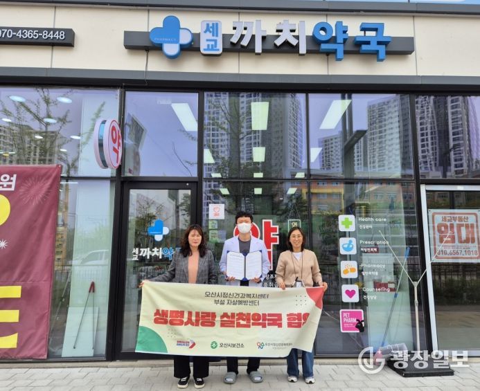 광장일보 나병석 기자 | 오산시정신건강복지센터 부설 자살예방센터는 지역사회 기반 생명존중 문화 확산과 자살예방 체계 강화를 위해 지난 20일과 21일 이틀간 관내 약국 4곳과 ‘생명사랑약국’ 업무협약을 체결했다고 밝혔다.