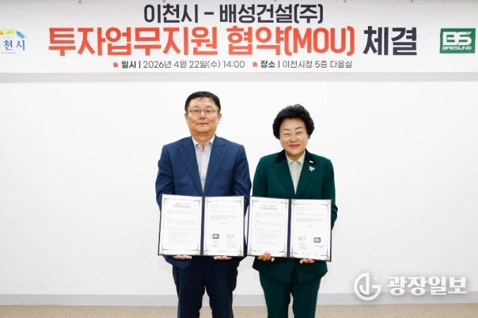 광장일보 주재영 기자 | 이천시가 22일 배성건설㈜와 203억 원 규모의 투자업무지원협약을 체결하고, 기업의 신규 공장 신설을 본격 지원한다.