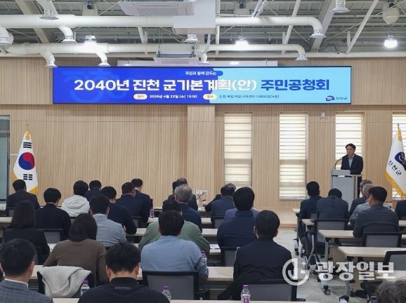 광장일보 이현나 기자 | 충북 진천군은 지속가능한 미래 발전 방향 모색과 주민의 목소리 청취를 위해 진천읍 복합커뮤니티센터에서 2040년 진천 군 기본계획(안) 공청회를 개최했다고 22일 밝혔다.