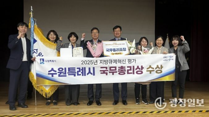 광장일보 주재영 기자 | 수원특례시가 행정안전부 주관 ‘2025년도 지방규제개혁 유공’ 평가에서 규제개혁 성과를 인정받아 국무총리 기관 표창을 받았다. 시상식은 22일 정부세종청사에서 열렸다. 수원시는 개인 표창도 받았다.