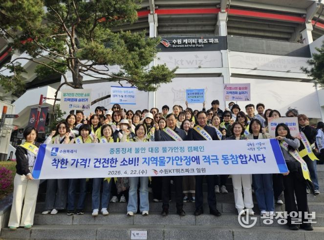 광장일보 주재영 기자 | 수원특례시는 중동정세 불안에 따른 물가 상승 우려에 대응하기 위해 21일부터 29일까지 전통시장과 골목상권 일원에서 ‘물가안정 릴레이 캠페인’을 전개한다.