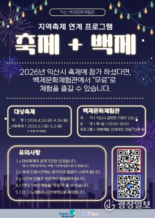 광장일보 주재영 기자 | 익산시가 지역 대표 축제와 백제문화 체험을 연계한 특별 이벤트로 관광객 맞이에 나선다.