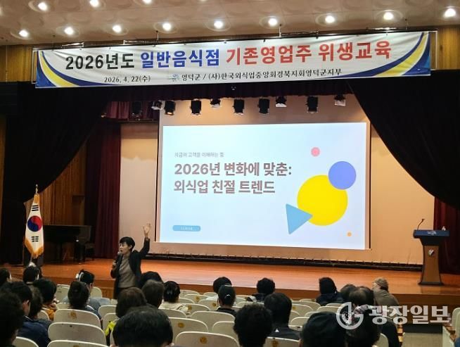 광장일보 주재영 기자 | 영덕군은 관내 외식 산업 영업자들의 위생 관리 역량을 높이고 고품격 외식 환경을 조성하기 위해 22일 영덕군민회관에서 일반음식점 기존영업자 300여 명을 대상으로 ‘2026년 일반음식점 위생교육’을 시행했다.