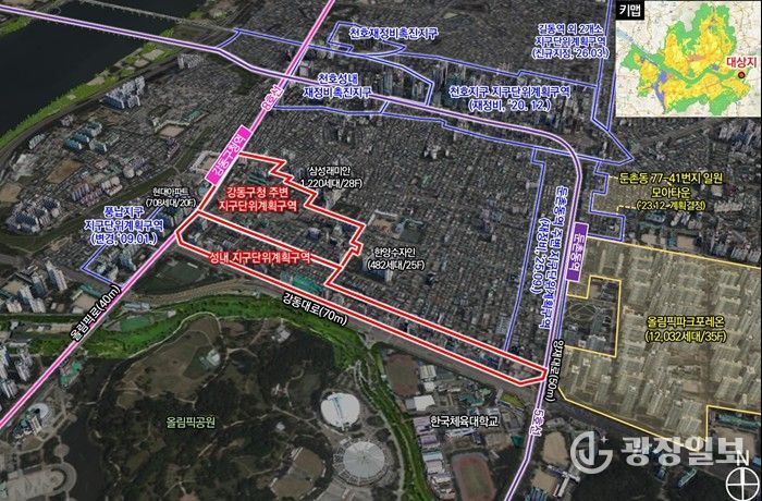 광장일보 주리아 기자 | 서울시는 2026년 4월 22일 개최한 제7차 도시·건축공동위원회에서 '강동대로 주변 지구단위계획구역 및 계획 결정(변경)(안)'을 “수정가결” 했다고 밝혔다. 이번 결정으로 강동구 성내동 451번지 일대 약 38만㎡ 규모 지역은 높이 완화와 용적률 체계 개편 등을 통해 개발 기반이 마련되고, 강동구의 새로운 중심지로 재편될 전망이다.