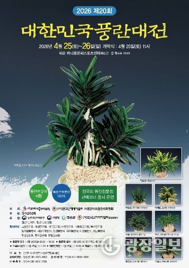 광장일보 주재영 기자 | 화순군은 오는 4월 25일부터 26일까지 이틀간 ‘2026 제20회 대한민국 풍란대전’을 개최한다고 밝혔다.