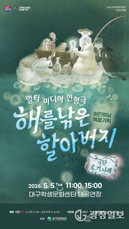 광장일보 주재영 기자 | 대구학생문화센터는 어린이날을 맞아 어린이와 가족 관객을 위한 특별 기획공연 '멀티미디어 인형극 해를 낚은 할아버지'를 오는 5월 5일 대공연장에서 선보인다.