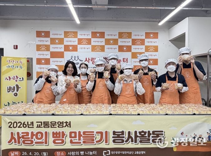 광장일보 주재영 기자 | 대구공공시설관리공단 교통운영처는 지난 4월 20일 지역 내 소외된 독거노인을 위한 ‘사랑의 빵 만들기’를 실시하여 샬롬재가노인돌봄센터에 기부하며 이웃사랑을 실천했다.