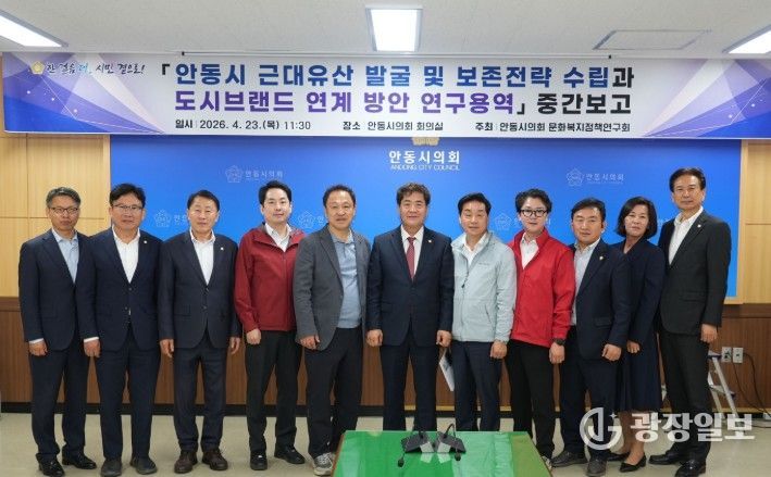 광장일보 주재영 기자 | 안동시의회 문화복지정책연구회는 23일 안동시의회 회의실에서‘안동시 근대유산 발굴 및 보존 전략 수립과 도시브랜드 연계 방안 연구용역’중간보고회를 개최하고, 연구 추진 현황을 점검하는 한편 향후 정책 방향에 대해 논의했다.