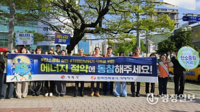 광장일보 주재영 기자 | 거제시는 23일, 고현동 일대에서 한국전력공사 거제지사와 함께 에너지 절약과 탄소중립 실천 문화 확산을 위한 합동 캠페인을 펼쳤다.