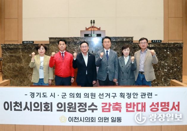 광장일보 주재영 기자 | 이천시의회 의원 일동은 23일 본회의장에서 “경기도 시·군의원 선거구획정안”과 관련해 이천시 의원 정수 감축에 반대하는 공식 입장을 밝혔다. 최근 경기도 시·군의원 선거구획정위원회가 경기도의회에 제출한 초안에는 이천시 의원정수를 기존보다 1명 축소하는 방안이 포함된 것으로 알려졌다.