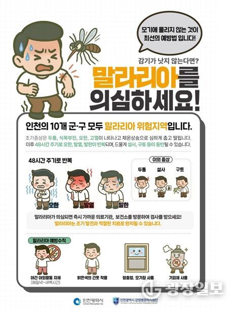 광장일보 주재영 기자 | 인천광역시는 오는 4월 25일 ‘세계 말라리아의 날’을 맞아 본격적인 모기 활동 시기에 대비해 시민들에게 국내 말라리아 감염 예방과 조기 검사의 중요성을 당부했다.