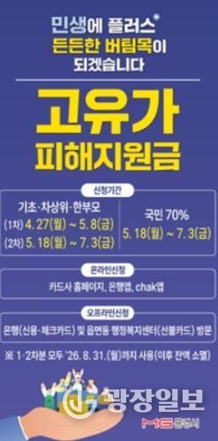 시 관계자는 “고물가로 어려운 시기에 이번 지원금이 시민들의 부담을 덜어주는 실질적인 도움이 되길 바란다”며 “지역 경제 회복과 시민 삶의 안정을 위해 최선을 다하겠다”고 밝혔다.