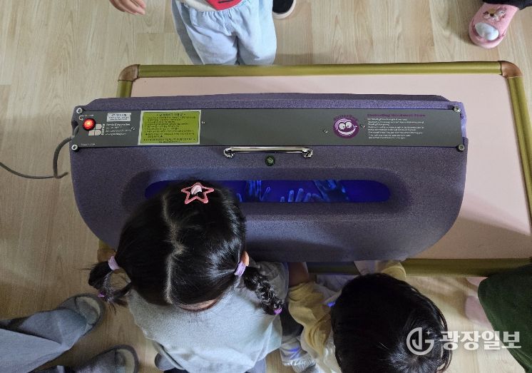 특히, 이번 교육에서는 아이들이 눈으로 직접 세균을 확인할 수 있는 ‘뷰박스(View-box)’를 활용한 체험형 교육이 큰 호응을 얻고 있다. 형광 로션을 바르고 손을 씻은 뒤, 뷰박스 검사기로 손에 남은 세균(형광물질)을 직접 눈으로 확인하는 체험형 방식으로 진행돼 흥미를 높이는 동시에 교육 효과를 극대화했다는 평가다.