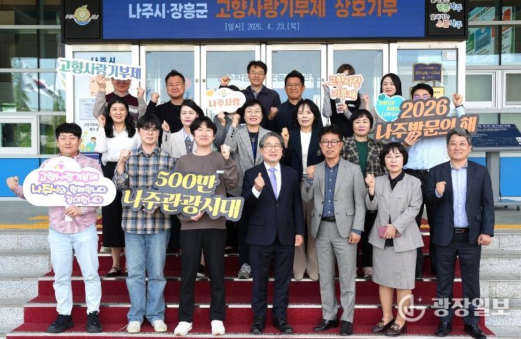 광장일보 주재영 기자 | 전남 나주시와 장흥군이 고향사랑기부제 활성화와 지역 간 상생 발전을 위해 손을 맞잡았다.