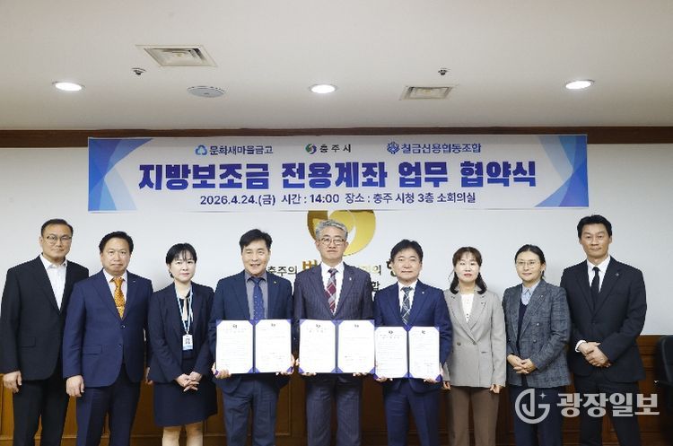 협약에 따라 칠금신용협동조합과 문화새마을금고는 △지방보조금 전용계좌 및 카드 개설·관리 △지방보조금관리시스템(보탬e) 연계 지원 △보조금 집행 관리 및 모니터링 등에 협력한다.