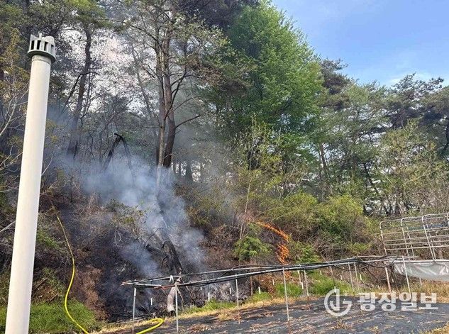 산림당국은 불이나자 헬기 2대, 산불지휘차량 1대, 산불진화차량 4대, 기타 3대, 특수진화대 6, 재난대응단 13명, 공무원 8명 등 산불전문인력을 투입하여 진화 작업을 벌이고 있다.