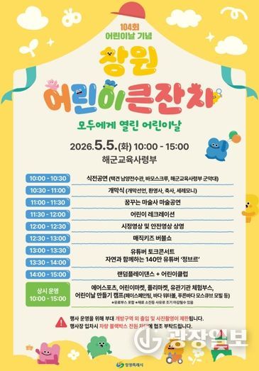 이수경 창원시 아동청소년과장은 “미래의 주인공인 어린이들이 가족과 함께 마음껏 뛰어놀며 꿈을 키울 수 있도록 안전하고 알찬 행사를 준비하겠다”고 전했다.
