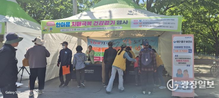 광장일보 주재영 기자 | 대구 중구보건소 치매안심센터는 지난 24일 두류공원 산책로 일대에서 치매 극복을 기원하고, 치매와 더불어 살아갈 수 있는 사회적 공감대 형성을 위해 ‘2026년 한마음 치매극복 건강걷기 행사’를 개최했다.