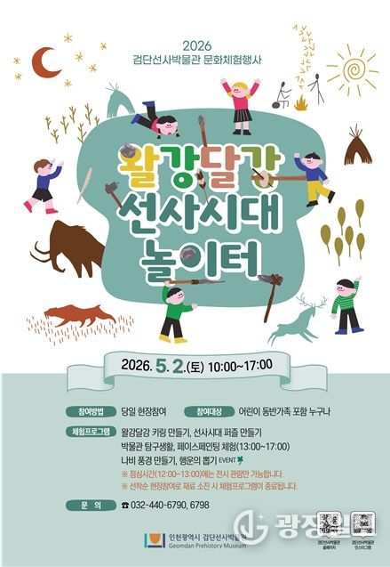 광장일보 주재영 기자 | 인천광역시 검단선사박물관은 오는 5월 2일, 가정의 달을 맞아 어린이 문화체험행사 ‘왈강달강 선사시대 놀이터’를 개최한다고 밝혔다.