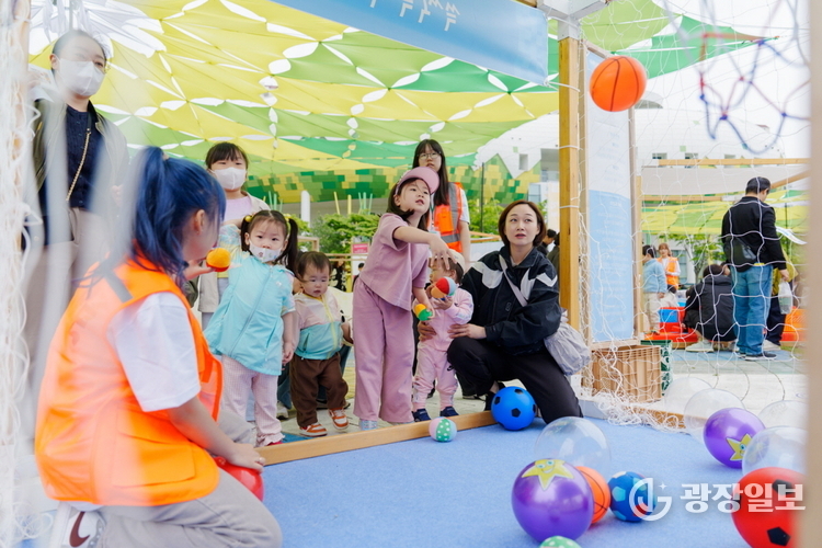 ‘컬러풀 올림픽 존’은 도전, 존중, 연대의 가치를 담아 총 8가지 놀이 체험이 펼쳐진다. 색깔별로 나눠진 공간에서는 신문지 공, 블록, 트램펄린 등을 활용해 목표를 달성하는 신체활동에 참여할 수 있다.