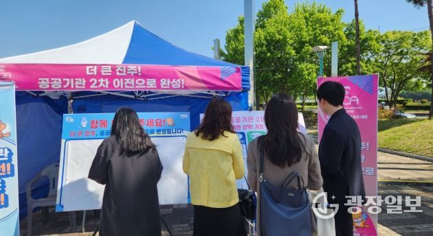 홍보관에서는 핵심적인 유치 대상 기관을 소개하고, 시민들이 직접 참여할 수 있는 ‘유치 희망 기관 투표 보드판’과 ‘응원 문구 보드판’를 마련해 공공기관 이전에 대한 시민들의 참여를 이끌어 냈다.