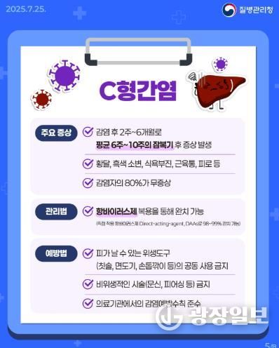 C형간염은 혈액·체액을 통해 전파되는 바이러스성 감염병으로, 방치하면 간경변증이나 간암으로 진행될 위험이 크다.