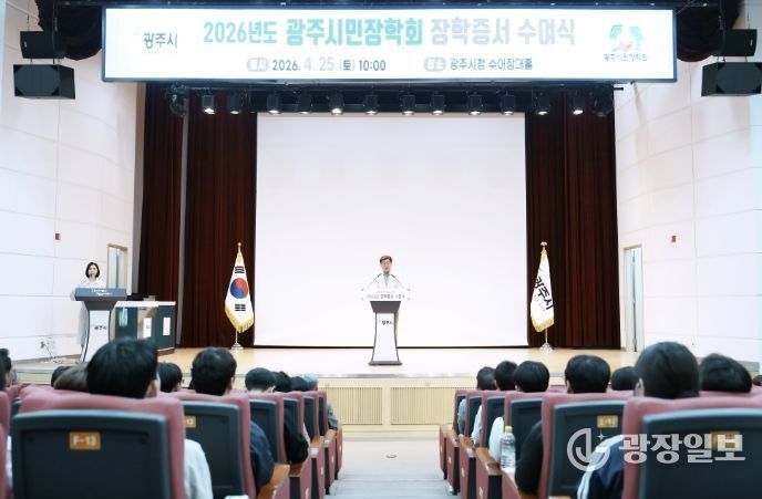 광장일보 주재영 기자 | 광주시는 지난 25일 광주시청 수어장대홀에서 (재)광주시민장학회 2026년도 장학 증서 수여식을 개최했다.