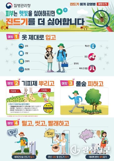 광장일보 주재영 기자 | 의정부시 보건소는 따뜻한 날씨로 농작업, 등산, 캠핑 등 야외활동이 본격화됨에 따라 진드기 매개 감염병 예방수칙 준수를 시민들에게 당부했다.