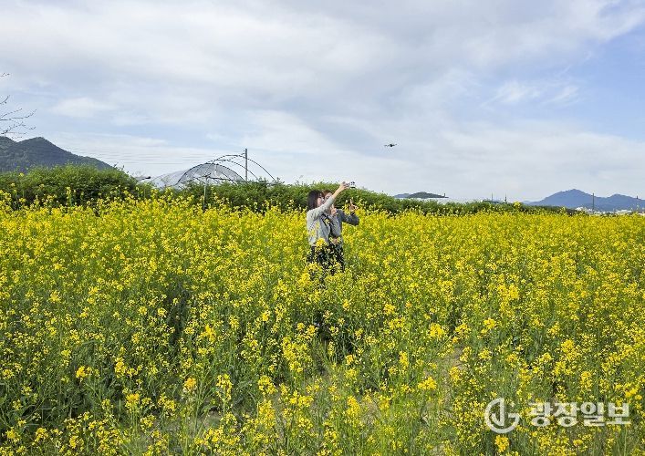 광장일보 주재영 기자 | 남원시 주생면의 옛 활주로 부지가 노란 유채꽃 물결로 뒤덮여 상춘객들의 마음을 설레게 하고 있다.