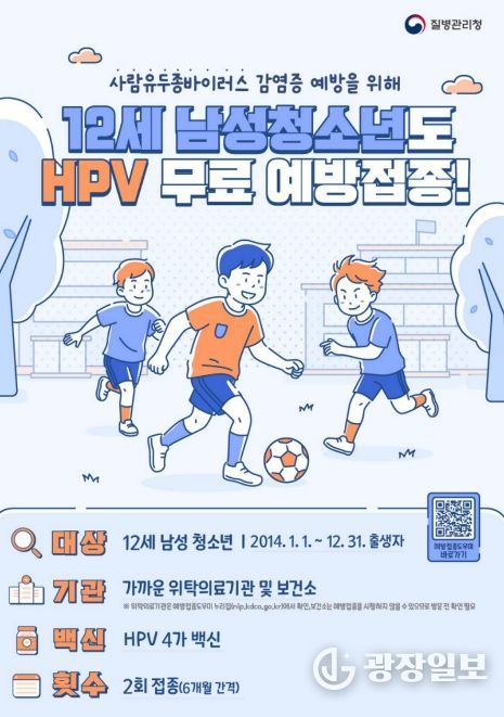 광장일보 주재영 기자 | 안성시는 사람유두종바이러스(HPV) 감염 질환을 예방하고 접종 형평성을 높이기 위해, 오는 5월 6일부터 HPV 국가예방접종 지원 대상을 12세(2014년생) 남성 청소년까지 확대한다고 밝혔다.