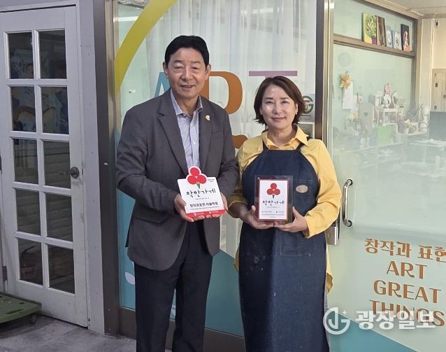 광장일보 주재영 기자 | (재)김해시복지재단 서부장애인종합복지관은 지난 4월 24일 창작과표현미술학원(대표 천현심)에 방문하여 '착한가게' 268호점 현판 전달식을 가졌다.