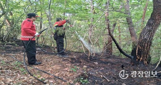 광장일보 주재영 기자 | 전북특별자치도 산불방지대책본부는 4월 27일 전북특별자치도 부안군 상서면 청림리 산138-1일원(국유림)에서 7시 31분에 발생한 산불을 30분만인 8시 1분에 진화 완료했다고 밝혔다.