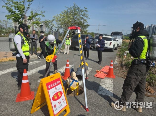 이날 현장에서는 대한산업보건협회 주관으로 밀폐공간 작업자 재해 예방을 위한 긴급구조 실기 훈련도 진행돼 현장 대응 역량을 높였다.