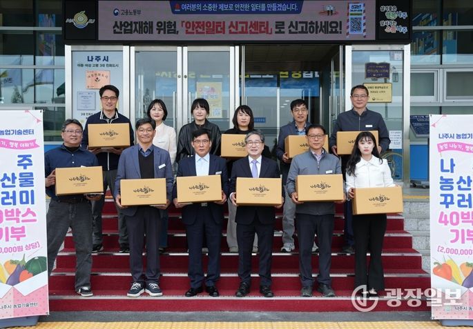 나주로컬푸드를 통해 마련한 돼지고기와 오리고기, 채소, 잡곡 등 약 200만 원 상당의 농축산물 꾸러미 40박스를 지역 푸드뱅크에 전달해 취약계층 지원과 지역 농산물 소비 촉진에 힘을 보탰다.
