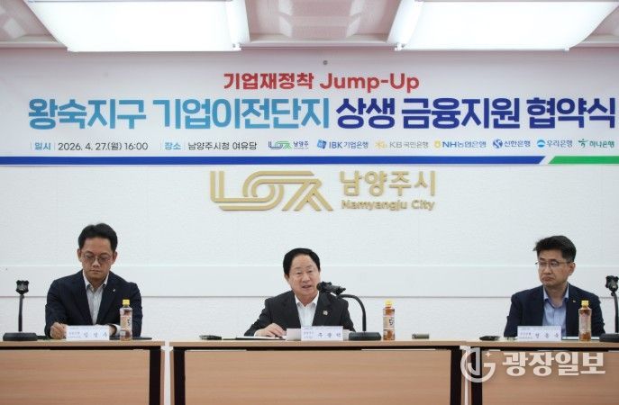 광장일보 주재영 기자 | 남양주시는 27일 왕숙신도시 개발로 이전이 필요한 기업의 안정적 재정착을 지원하기 위해 ‘왕숙신도시 기업재정착 점프업(Jump-up) 상생금융’ 업무협약을 체결했다고 밝혔다.