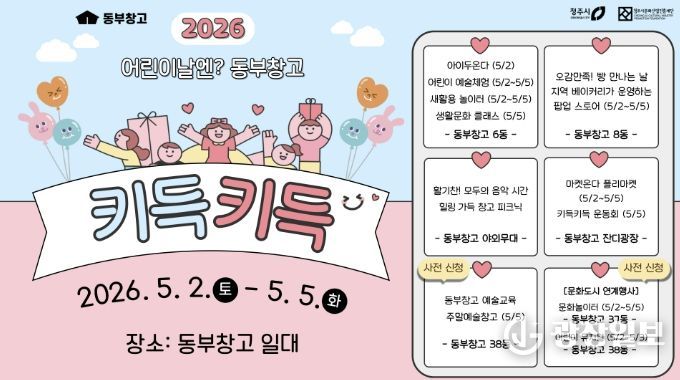 광장일보 이현나 기자 | 청주시와 청주시문화산업진흥재단은 가정의 달 5월을 맞아 오는 5월 2일부터 5일까지 동부창고 일원에서 어린이날 행사 ‘키득키득’을 연다.