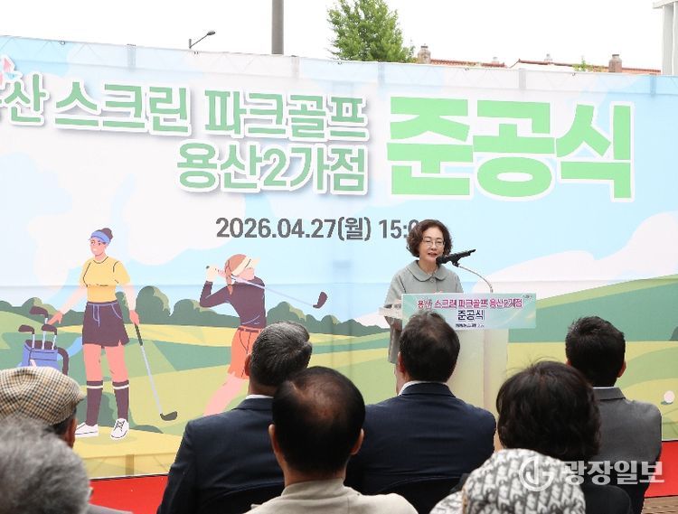 광장일보 주리아 기자 | 서울 용산구는 27일 ‘용산 스크린 파크골프 용산2가점’ 준공 기념행사를 열었다고 밝혔다. 이날 행사는 축사, 테이프 절단식, 시타 순으로 진행됐다.
