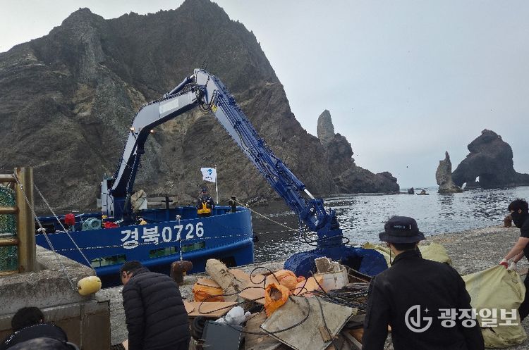 광장일보 주재영 기자 | 경상북도는 4월 27일 해양환경정화선 ‘경북0726호’를 독도와 울릉도 해역에 긴급 투입해 해양쓰레기 수거 활동을 실시했다.