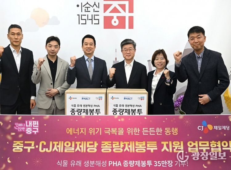 정혁성 CJ제일제당 BMS본부장은 “자사의 바이오 기술이 지역사회 자원순환 문화 정착에 도움이 되길 바란다”며 “앞으로도 중구와 협력해 친환경 정책 추진에 힘쓰겠다”고 말했다.