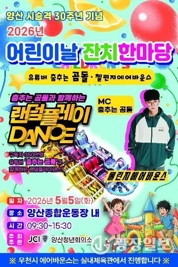 광장일보 주재영 기자 | 양산시는 5월 5일 9시 30분부터 15시 30분까지 양산종합운동장 주경기장에서 '2026년 어린이날 잔치 한마당' 행사가 개최된다고 밝혔다.