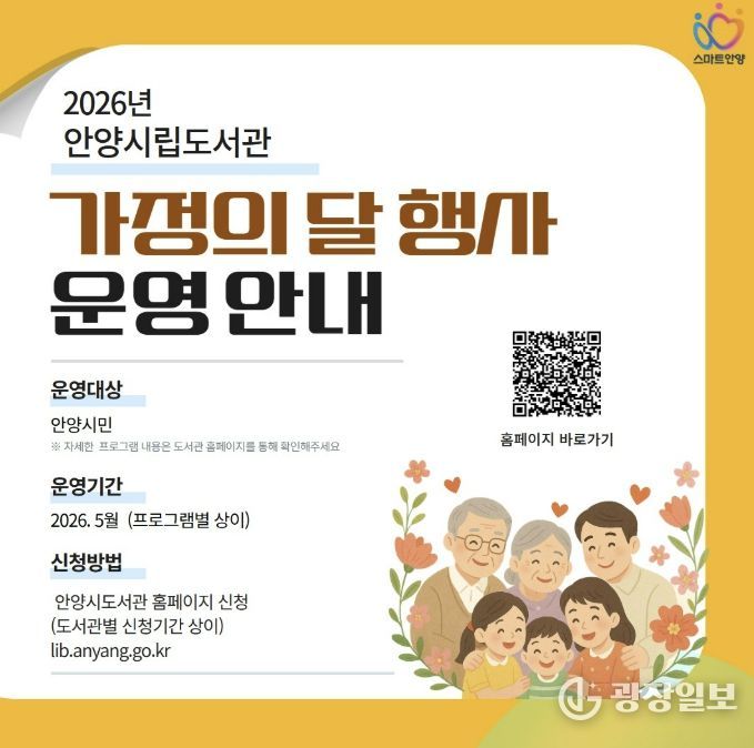 광장일보 주재영 기자 | 안양시도서관은 5월 가정의 달을 맞아 어린이와 부모가 함께하는 체험프로그램, 가족공연, 인문학 강연, 생활문화 강좌, 전시 등 다양한 행사를 마련했다.