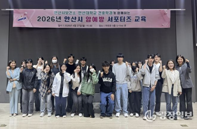 광장일보 주재영 기자 | 안산시는 지난 27일 안산대학교 자유관 U-first 홀에서 ‘2026년 안산시 암 예방 서포터즈 발대식 및 교육’을 개최했다고 28일 밝혔다.
