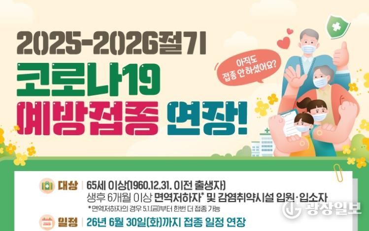 광장일보 주재영 기자 | 남원시보건소는 여름철 코로나19 재확산에 대응하기 위해 ‘2025-2026절기 코로나19 예방접종’ 기간을 당초 4월 30일에서 6월 30일까지 두 달간 연장한다고 밝혔다.