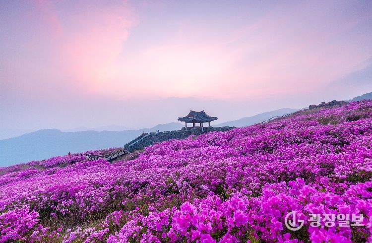 특히 4~5월이면 산자락 가득 분홍빛 바다처럼 일렁이는 철쭉꽃이 유명하다.