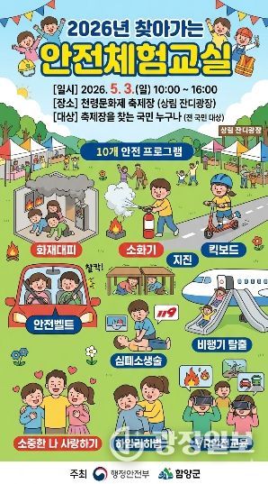 이번 체험 교실은 축제장을 찾는 군민과 관광객에게 생활 속 안전의 중요성을 알리고, 위기 상황 대응 능력을 높이기 위해 마련됐다. 행정안전부와 함양군이 공동 주최하고, 행정안전부 어린이 안전교육 전문기관이 참여해 체험 중심의 안전교육을 진행한다.