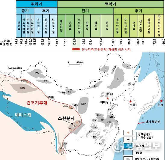 국립대구과학관 최병도 박사와 중국 난징지질고생물학연구소 공동연구팀은 중국 남부 쓰촨분지의 백악기 전기(약 1억 3천만 년 전) 지층에서 발견된 20종의 담수 개형충을 기반으로 이들의 분포와 진화가 테티스해(Tethys Ocean)라는 고대 바다의 영향을 강하게 받았다는 결과를 새롭게 제시했다.