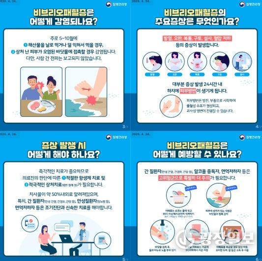 정광선 전남도 보건복지국장은 “전남은 전국에서 해안지역이 가장 많아 감염 위험이 상존하므로 간질환, 당뇨 등 기저질환이 있는 환자는 어패류를 끓여먹고, 피부 상처가 있는 사람은 바닷물 접촉을 삼가는 등 각별한 주의를 기울여야 한다”고 당부했다.
