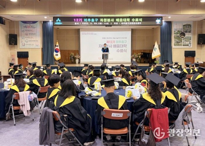 광장일보 주재영 기자 | 인천 미추홀구종합자원봉사센터는 28일 미추홀구청 대회의실에서 ‘2026년 미추홀구 자원봉사 배움 대학 수료식’을 개최했다.
