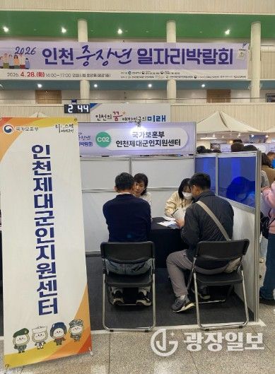 광장일보 주재영 기자 | 국가보훈부 인천보훈지청 제대군인지원센터는 2026. 4. 28.에 인천광역시 주최로 개최된 ‘2026 인천 중장년 일자리박람회’에 협업기관으로 참여하여 중장년 제대군인의 효율적인 취업지원을 위한 구인구직 행사를 진행했다.