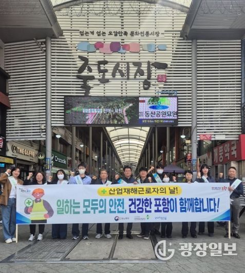 광장일보 주재영 기자 | 포항시는 28일 ‘산업재해근로자의 날’을 맞아 죽도시장 일원에서 유관기관과 함께 시민과 근로자를 대상으로 산업재해 예방 및 안전문화 확산을 위한 합동 캠페인을 실시했다.